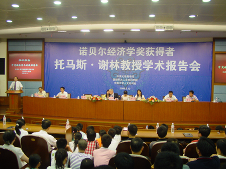 15时整,托马斯·谢林教授及其夫人准时出现,现场掌声雷动。
