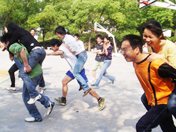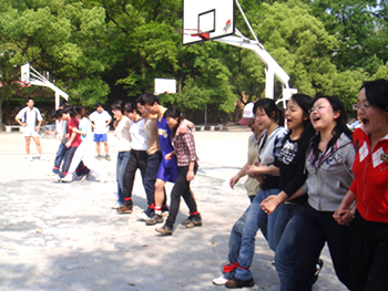 “迷你奥运会”设置了奥运知识问答、跨栏比赛、接排球、五人六足、“3+2”篮球赛等比赛项目,每个比赛项目都出自精心设计,项目的参与性、互动性很强。整场活动精彩纷呈,每个队的队员们都同心协力,通力作战,比赛过程中笑料不断,令人忍俊不禁,“3+2”篮球赛则将大家的兴致推到了高潮,场内选手们斗志昂扬,场外拉拉队员呐喊助威,在“企管队”PK“管工队”的过程中,企管队男队员将对手引到自家门口,随即一道漂亮的传球将球传给早在对方战场等待的女队友投篮,屡创佳绩,最终摘得冠军。“迷你奥运会”趣味性、娱乐性和竞技性同在,受到了大家的一致好评,究生们纷纷表示这些活动不仅愉悦身心、锻炼身体,同时也为他们提供了交流信息、增进情感的机会,希望以后能有更多的机会参与这样的活动。
