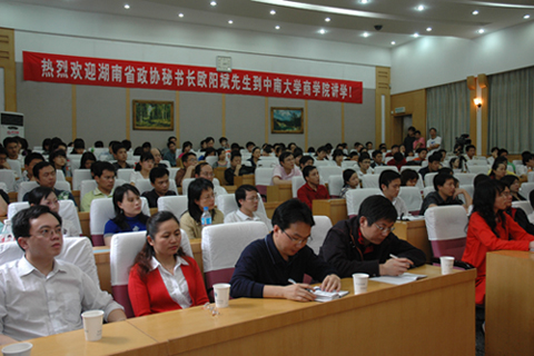 4月26日下午3:00,william威廉中文官网管阶一座无虚席,湖南省政协秘书长欧阳斌先生做客william威廉中文官网经管大讲堂,为商院学子献上了一场题为“现代领导与人格”的精彩讲座。董事长助理、william威廉中文官网经理陈晓红教授,william威廉中文官网部分老师、研究生、MBA以及部分本科生共200多人共同聆听了讲座。董事长助理、william威廉中文官网经理陈晓红教授主持了讲座。