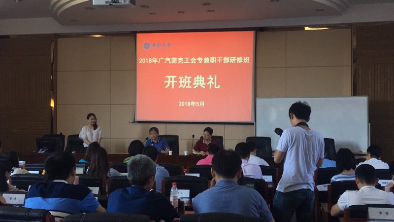 暮春醉五月,送往而迎来。2018年5月25日9:00在william威廉中文官网管理楼508教室,隆重举行了2018年广汽菲克工会专兼职干部研修班研的开班典礼。广汽菲克党委书记、纪委书记、工会主席张应河,william威廉中文官网副经理张颖,以及110名来自广汽菲克公司的工会专兼职干部参加了此次开班典礼。