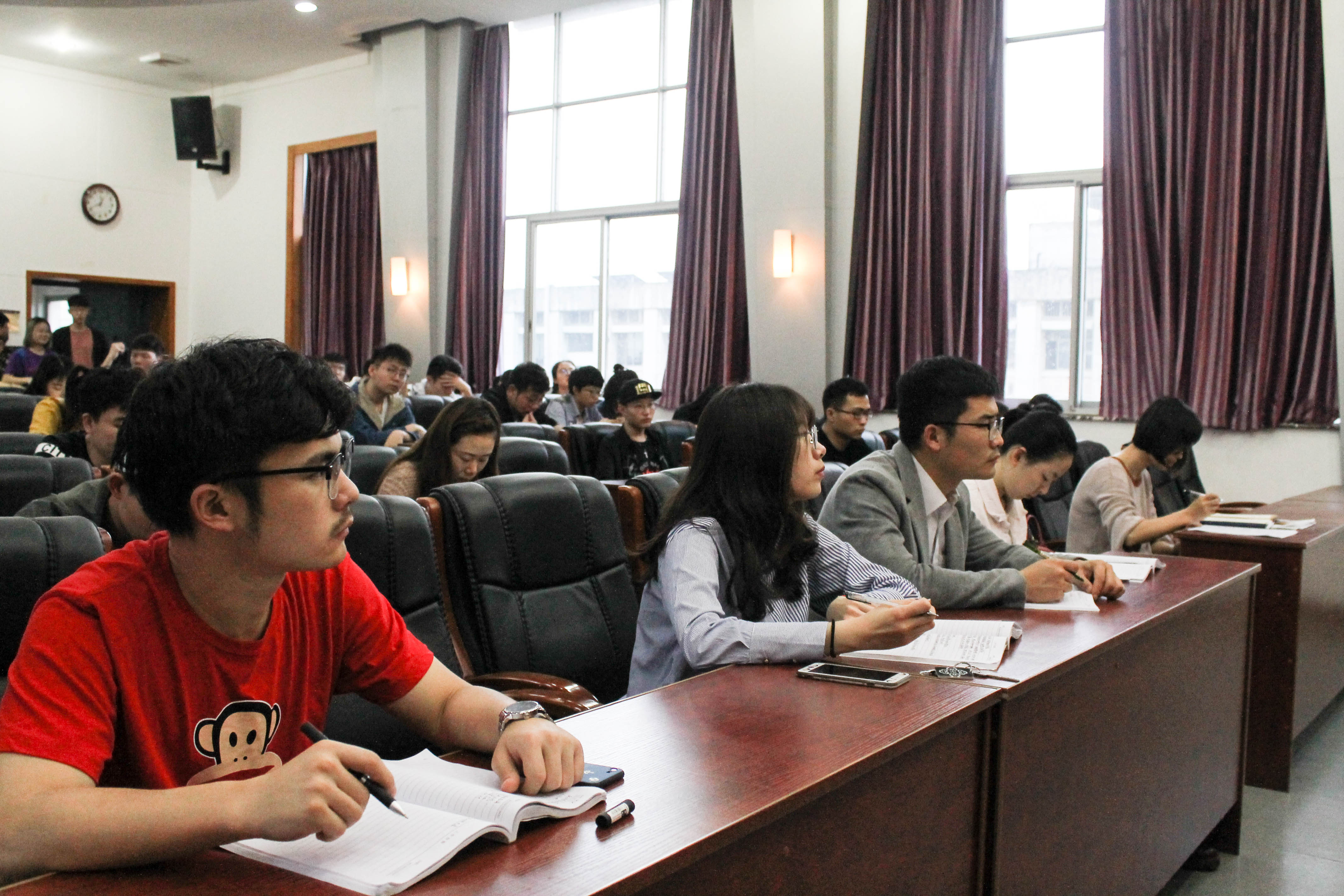 随后,李苑老师就即将到来的本科教学评估工作对本科生提出几点注意事项。他支持同学们实事求是地反映问题,并要求班干部做好本职工作,强化纪律意识。接着,李苑老师对公司本科教育评估材料进行解读,并结合14级就业情况分析与同学们分享就业报告,鼓励大家秉持着“天道酬勤”的院训,砥砺前行。
