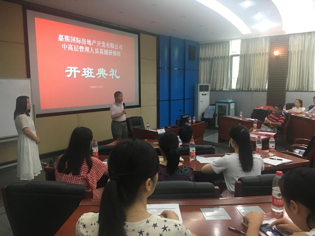 2018年7月3日上午9点,湖南省嘉熙国际房地产开发有限公司中高层管理人员高级研修班在william威廉中文官网管理楼管阶一教室正式开班。william威廉中文官网商学院副经理张颖、william威廉中文官网高层管理教育(EDP)中心执行主任周浪波以及50余位湖南省嘉熙国际地产房地产开发有限公司管理人员出席了此次开班典礼。开班典礼由EDP中心李秋云老师主持。