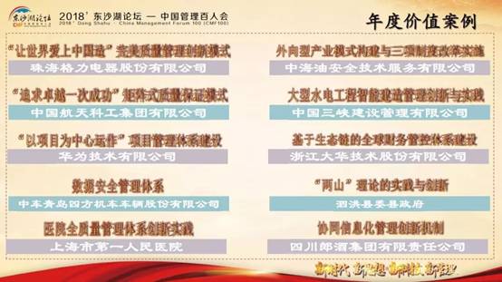 2018年10月13日-14日,由中国管理科学学会主办,以“新时代·新思想·新科技·新管理”为主题的“2018’东沙湖论坛—中国管理百人会”,在中国·苏州召开。此次论坛大会举行《管理蓝皮书·中国管理发展报告(2018)》发布会,揭晓了2018年中国管理价值人物、组织、案例。公司名誉经理陈晓红院士入选年度中国管理价值人物,排名前十。