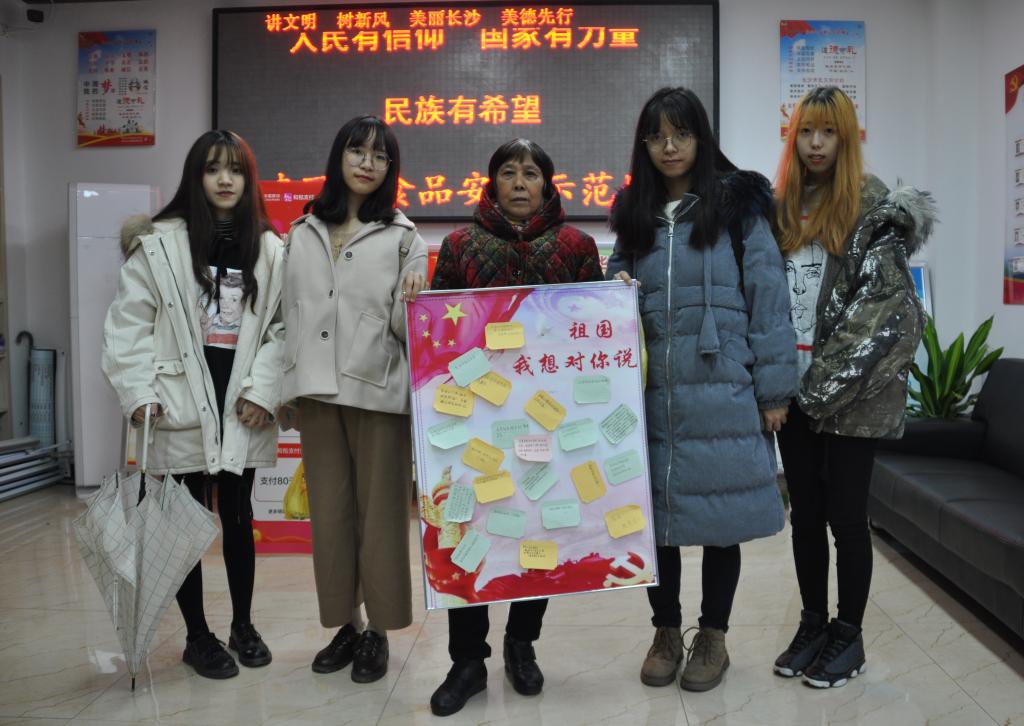 活动伊始,同学们参观社区服务中心,与社区干部见面并拍照留念。随后,其中一组人员与社区老人亲切交流。“很多变化都是以前不敢想的,真的非常感谢国家。”当回顾改革开放四十周年来人民生活在衣食住行方面发生的巨大变化时,老人们的自豪之情溢于言表。志愿者们邀请老人和社区干部参加“祖国,我想对你说”活动,在纸上写下对祖国的美好祝福。