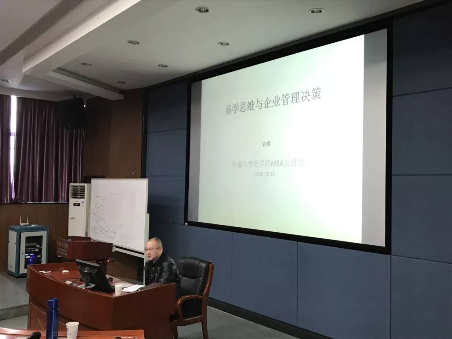 12月16日下午4点,民建湖南省委经济与法律委员会委员、长沙市政协第十届委员会经济科技委员会副主任、湖南潇湘不动产投资管理有限公司董事,湖南金港投资担保有限公司董事、总经理袁睿先生应邀来公司进行学术讲座。袁睿先生以“易学思维与企业管理决策”为题为大家带来了精彩纷呈的学术讲座。讲座由尹华副教授主持,MBA中心老师和各年级MBA学员共同聆听了本次讲座。