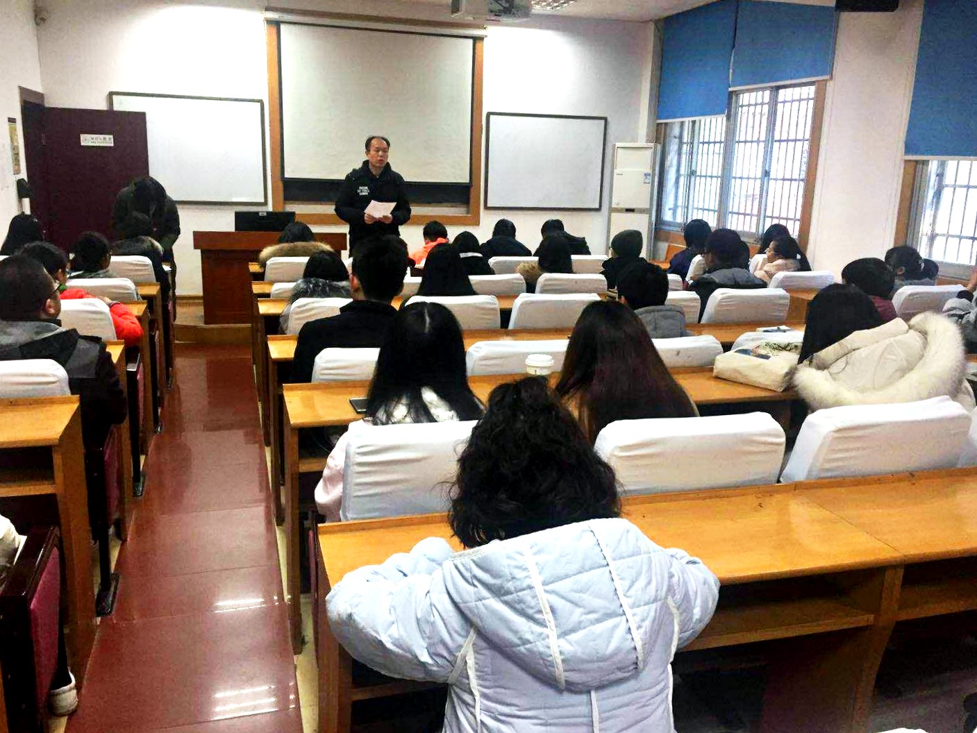 会议伊始,李苑老师提出树立“安全第一”观念的要求,他强调全体留校员工应时刻以安全为第一要义,始终牢记安全意识,其中包括切实增强自我求助意识和朋辈互助意识,即在保障自身安全的同时,积极关注同楼道同学的身心情况并及时反馈。随后,依据《老员工活安全手册》及校纪校规中的相关规定,李苑老师就水电安全、人际交往安全、网络使用安全等方面,作出了具体的规定及要求。最后各级辅导员就寒假期间的员工管理工作进行了具体安排并指挥留校员工们进行了安全稳定知情书的学习和签字。