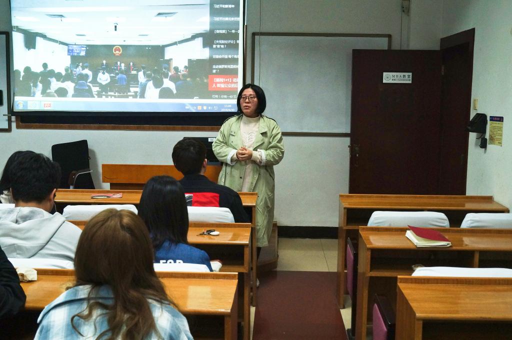 最后,陈文就此次大会直播的观看进行总结,她结合五四历史背景,提出同学们在树立远大志向的同时,应将自身规划同党和国家的命运紧密结合,她对当前毕业生中涌现出的为国家利益赴边远地区奉献青春的优秀代表提出表扬,从而鼓励同学们用更宽广的世界观做出自己的规划。