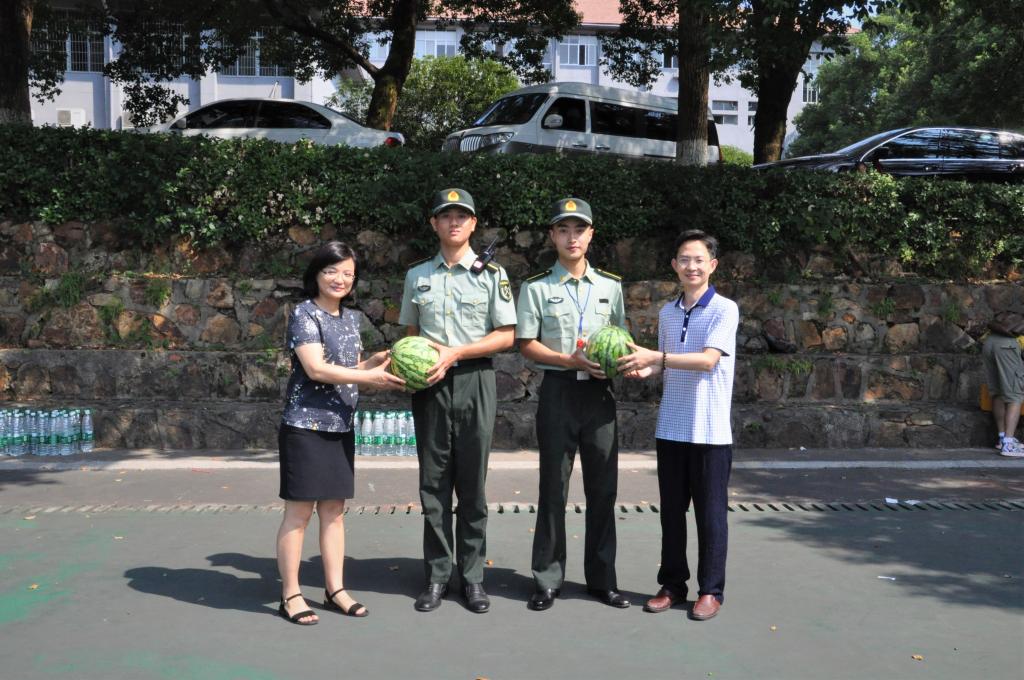 随后,院领导为教官和新生们派发慰问品,并合影留念。这次慰问,体现了公司领导老师对新生军训的重视与关切,更激励了2019级学子不畏烈日、不惧辛苦投入到军训和今后的学习生活中去。