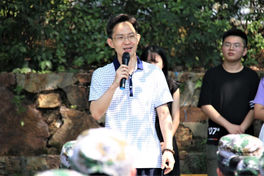 任胜钢书记则与新生分享了他员工时代的军训经历,将过往的艰苦条件与如今的优越环境作对比,希望新生在军训和今后的学习生活中锻炼自己,以优异的表现报效祖国的期许。
