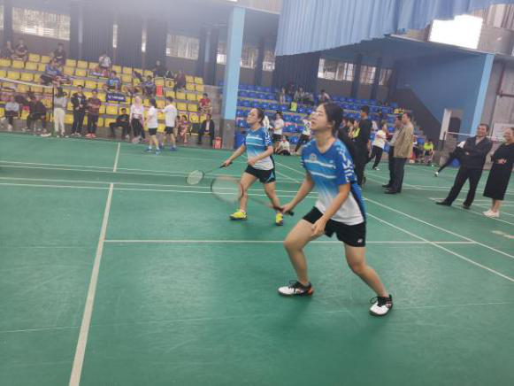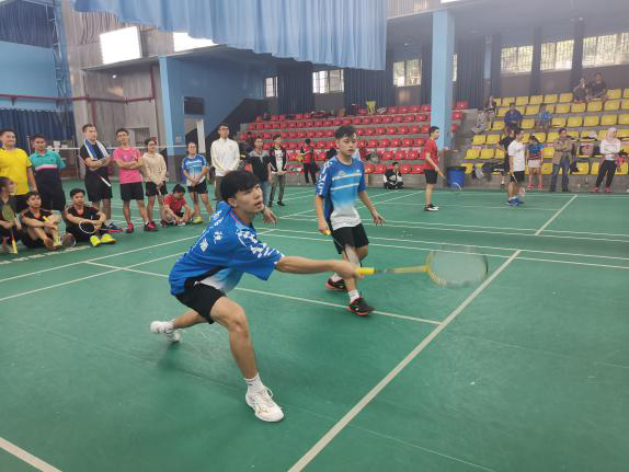 令人期待的冠亚军争夺赛,赛前师生充分讨论排兵布阵,丝毫不能被之前的顺利晋级冲昏头脑。土木学院代表队是多年的强劲对手,对冠军也是虎视眈眈渴望胜利。第一场男双比赛,由老挝的宋潘和小龙两位同学出场,第一局前半局比分相持不下,一直到十平后,才逐渐拉开距离取胜;第二局争夺更加激烈,比分一度来到了18平,场上场下都紧张万分,好在两位同学默契配合,不断重击进攻,最终获得男子双打的胜利!