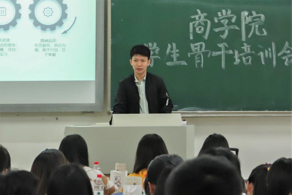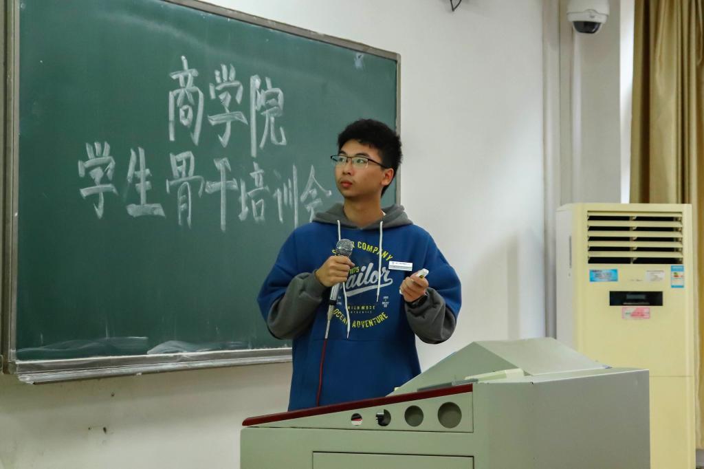 继破冰游戏之后,17届团学会副主席朱昱承同学分享经验。他从“是什么”、“为什么”、“怎么做”三方面提出了对“员工干部”的独到见解,表达了对未来工作的希望,并在提问环节为学员释惑,提出可行方法。