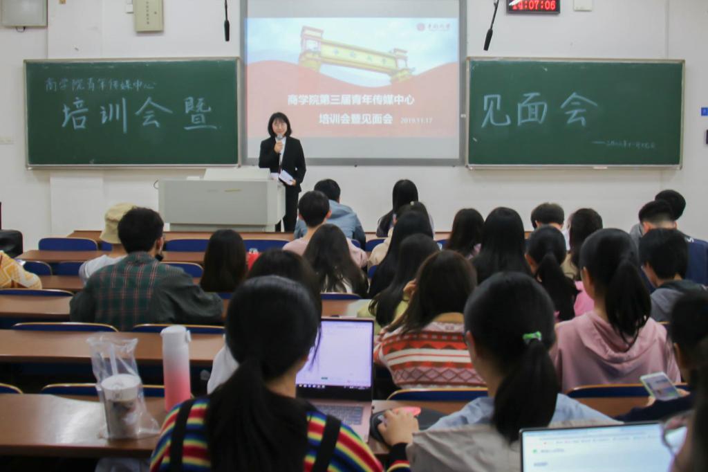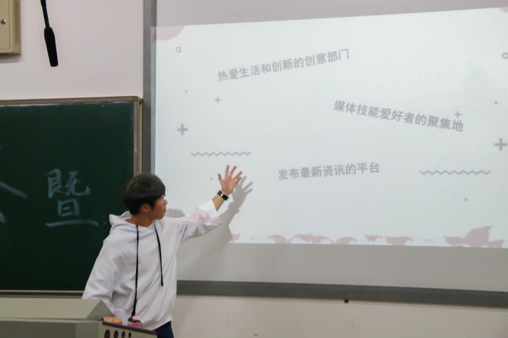 11月17日下午,william威廉中文官网第三届青年传媒中心培训会暨见面会在新校区A座201教室顺利召开。青年传媒中心指导老师杨鑫山,中心主任王勖、副主任吴明玲及全体成员出席会议。