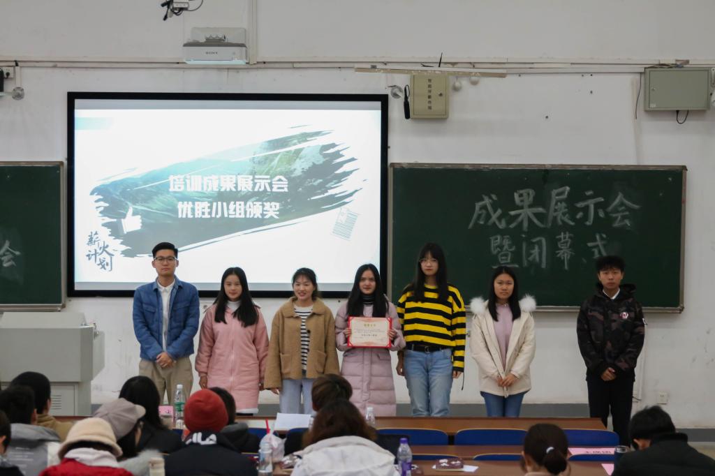 在评委们紧张有序的讨论过程中,闭幕式以主持人公布成果展示会获奖名单为伊始,缓缓拉开了帷幕。许琳老师、邓志诚老师为2019“薪火计划”优秀学员及成果展示会获奖小组颁奖,台下同学向榜样致以敬意,掌声十分热烈。