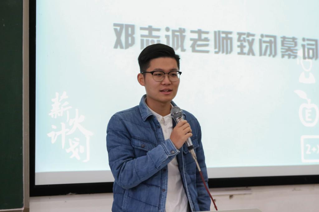 闭幕式接近尾声,邓志诚老师上台致闭幕词,他提倡在座诸位员工干部用心为同学服务、用心对待每一份工作、用心培养自身的技能与能力,不能因为繁杂的员工工作任务而忘记初心,也不能因为进步的过程过于漫长而懒散怠惰,应当切实、勤恳,砥砺前行。