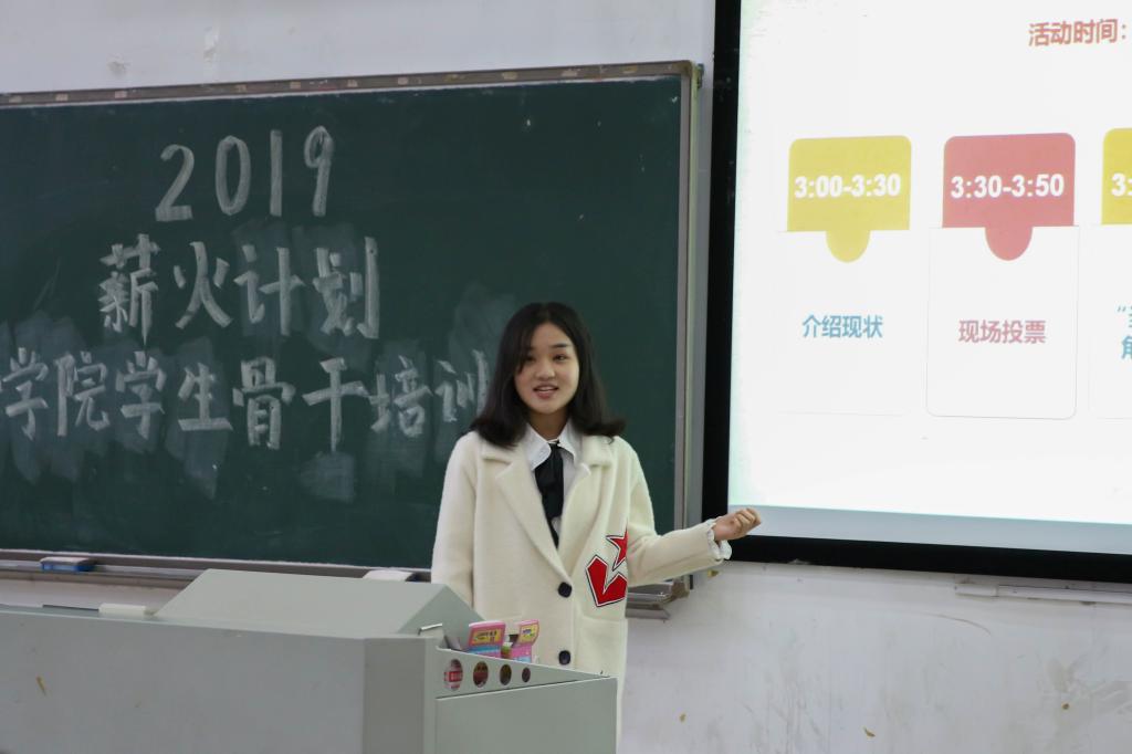 首先,进行“薪火计划”培训成果展示会,各组代表上台进行小组策划作品的展示与答辩,并由评委依据细则进行客观公正的评分。