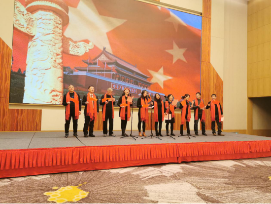 教职工代表盛装唱响《今天是你的生日,我的中国》,祝福新中国,赞礼新时代。