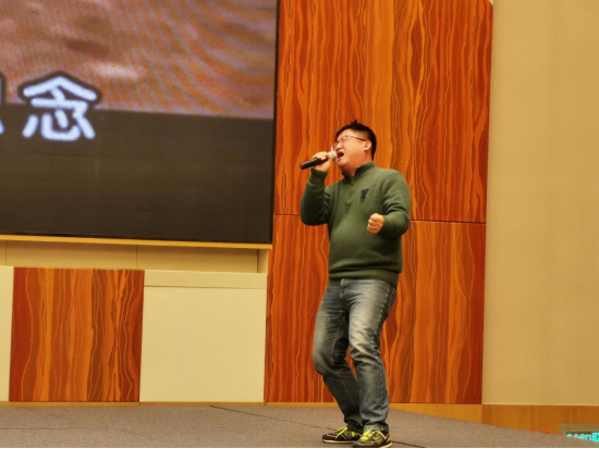 青年教师代表带来《歌曲串烧》,让人心潮澎湃,斗志昂扬。