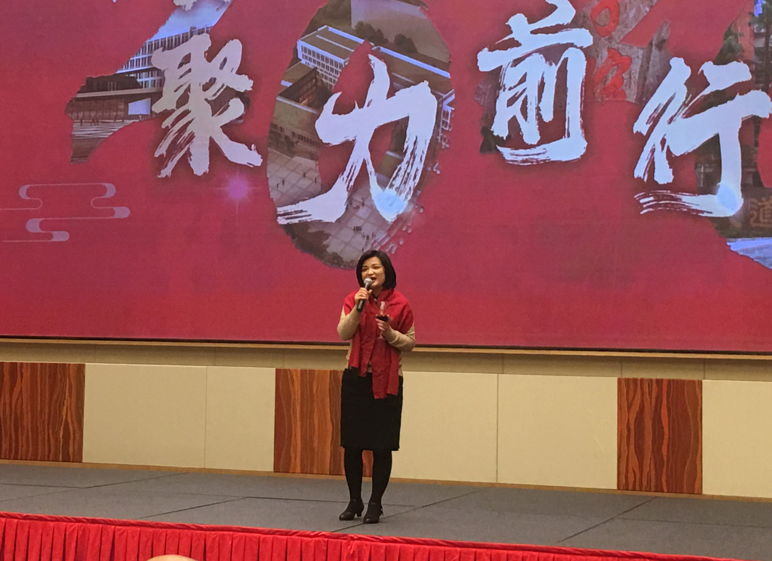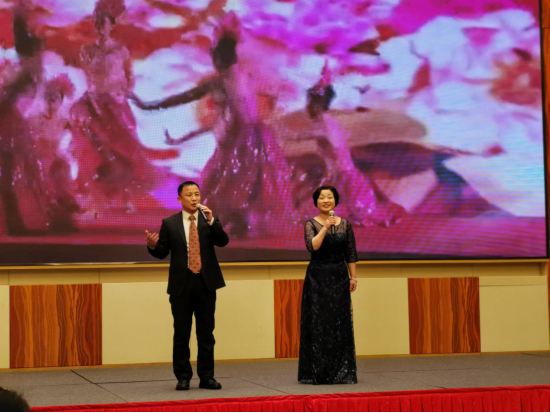 经理龚艳萍、公司党委书记任胜钢先后上台为晚会致辞,对全体教职工过去一年的辛勤努力表示衷心的感谢,向教学科研取得优秀成果的老师表示热烈的祝贺,在庆祝2019年取得丰硕成绩的同时,号召全体教职工要以更加饱满的斗志,投入到学院“双一流”建设,创造学院更加辉煌的未来,祝愿学院欣欣向荣,祝福大家幸福安康。