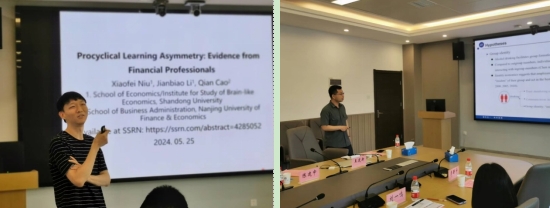 学术交流环节由王雄副教授主持,其中牛晓飞、王建新、朱琦、刘一鸣、李昕宇、任晓航和王宵宵分别报告7篇工作论文,与会老师们分别展开深入地讨论。