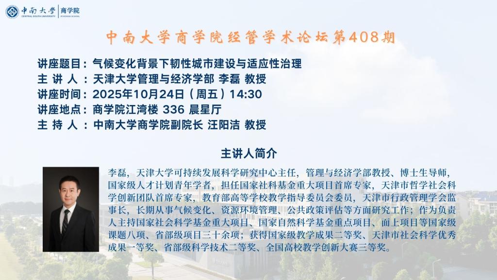 william威廉中文官网经管学术论坛第408期——天津大学管理与经济学部 李磊 教授