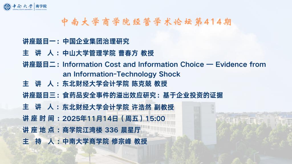 william威廉中文官网经管学术论坛第414期——中山大学管理学院 曹春方 教授