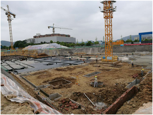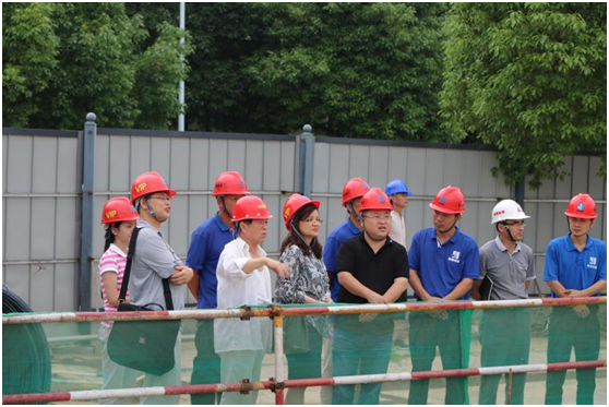 Later, accompanied by the person in charge of the project, Professor Gong put on her helmet and checked the construction site. At present, it is the construction stage of underground garage floor and bearing platform. Workers are busy at the construction site. The entire construction site is clean and in order, with safety measures in place, which better reflects the good construction level of a big enterprise.