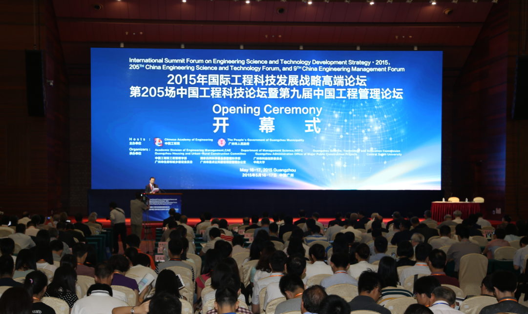 International Summit Forum on Engineering Science and Technology Development Strategy 2015 and 9th China Engineering Management Forum took place on May 16-17, 2015. This forum was jointly organized by Chinese Academy of Engineering and Guangzhou Municipal Government. A number of academician and professors participated the opening ceremony in this forum, including President of the Chinese Academic of Engineering Ji Zhou, Vice-President of the Chinese Academic of Engineering Delong Xu, Guangdong provincial standing committee and secretary of Guangzhou municipal party committee mayor Xuefeng Ren, Deputy secretary of Guangzhou municipal party committee and Jianhua Chen and so on. The forum attracted more than 500 scholars and experts including 34 academicians from China and abroad.