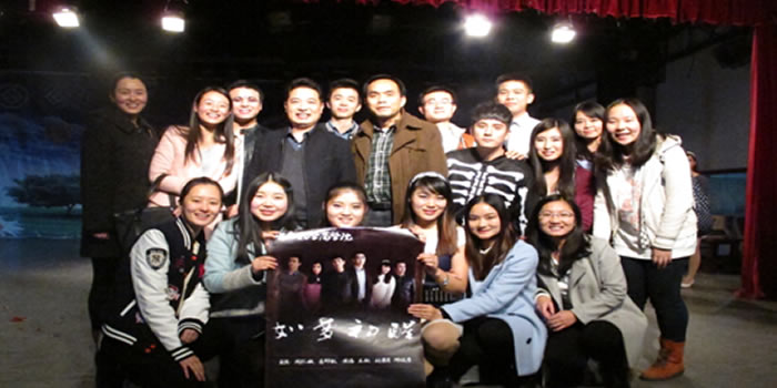 This work of Business School mainly tells us a story about college life. The hero of this story is a grade three graduate student, whose name is Mo CHEN. His soul comes to the underworld and meets Meng-Po, to whom he tells his unfortunate stories: being despised by roommates, dumped by girlfriend and having contradictions with his parents, Mo CHEN can’t understand why he is so treated by his roommates, girlfriends, and parents. After drinking lots of alcohol, he comes near the lake in campus and suddenly falls into the lake. With the guiding of Meng-Po, he sees such a scene in the real word: his parents, friends and girlfriend are bitterly calling his name beside the hospital bed. They don’t despise him, but treats him sincerely. He just misunderstood them. After knowing the truth, he struggles with the underworld for recovering. As soon as his soul freed from the underworld, the real Mo CHEN lying in the hospital bed wakes up, but then he finds that he just has a dream after falling into the lake. Upon the curtain falling, the hall burst into thunderous applause. Some girls’ eyes even dimmed with tears. This story teaches us to face our life positively and it is touching to every audience.