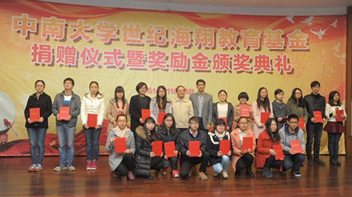 At 4:30 p.m, on November 24, the Donation Ceremony of Sail Group Educational Fund& the Award Ceremony of 2014 Sail Group Hard Scholarship (Grant) was held in international Hall of Science Building in CSU, with 130 students winning the prize. Jing GU, the Chairman of Sail Group, Lihui PAN, the Shareholder of Sail Group, Ming HUA, the Vice-manager of Hua Tuo Estate Co. Ltd, He PAN, the Director of Administration Office of Sail Group, WenBing GAO, the Party Secretary of CSU, Jianjun XU, the Deputy Secretary of CSU, Damin YOU, the Party Secretary of Business School, Huadong LI, the Deputy Secretary of Business School, etc, attended this ceremony, hosted by Jianxiang JIANG, the Assistant of President &the Director of School Office.