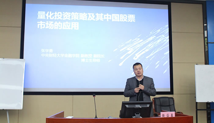 In the afternoon of November 10, Xueyong ZHANG, an Associate Professor, the Vice-Dean of the Institute of Finance of Central University of Finance and Economics, and the doctoral supervisor came to visit the Business Forum of our school. On the subject of Quantitative Investment Strategy and Its Practice in Chinese Stock Market, he shared his research results and views of capital market. Over ten teachers including Ping WEI, a Associate Professor and Assistant of the Dean of Business School, Prof. Genming ZHANG, The Head of Finance and Investment Department, Hu SHENG, the associated head of Finance Department, and more than 70 postgraduates came to attend the Forum, which was hosted by Chao DENG, the Head of Finance Department.
