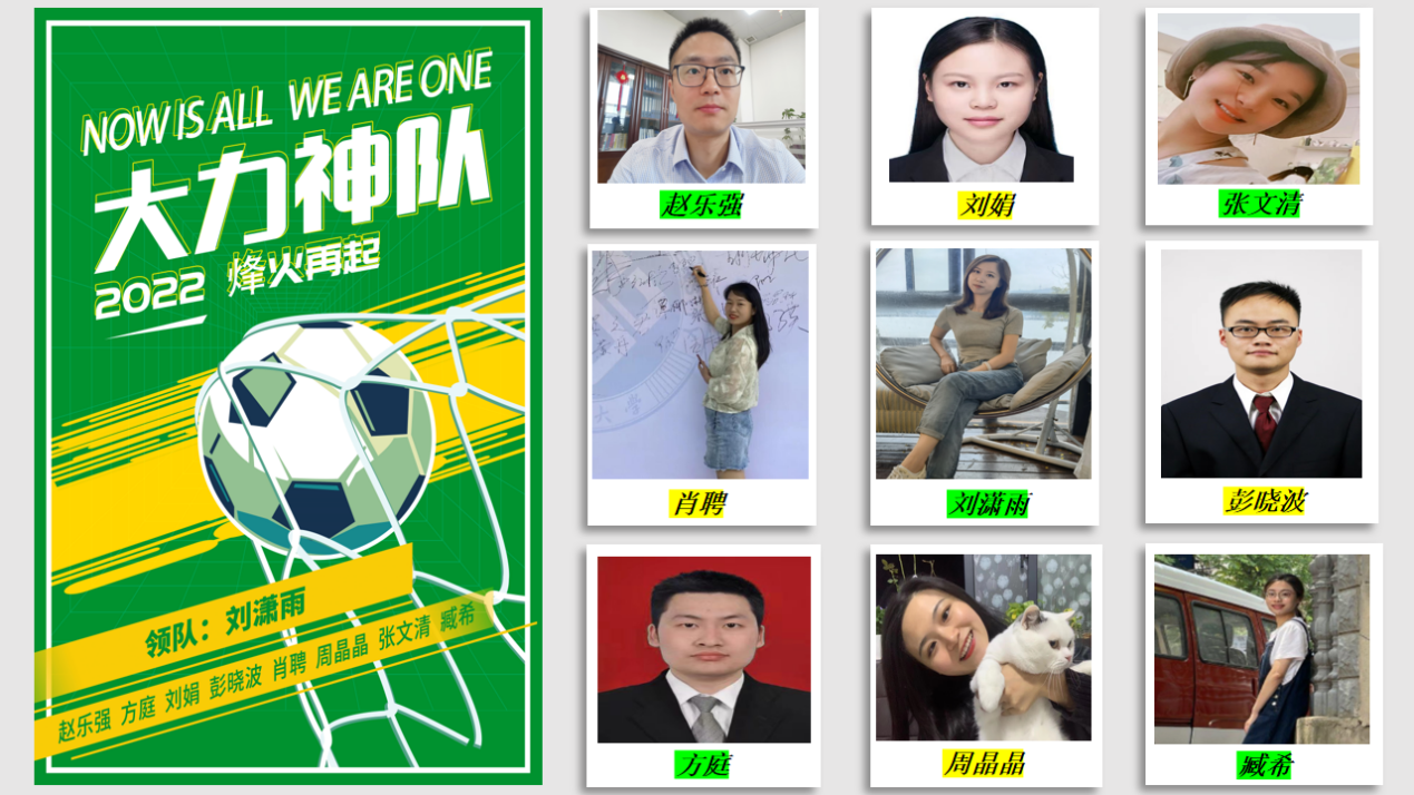 曾令杰(领队)、骆彬、袁津津、黄钰心、谢曦、黄泛舟、王斌、贺英超、黄丹