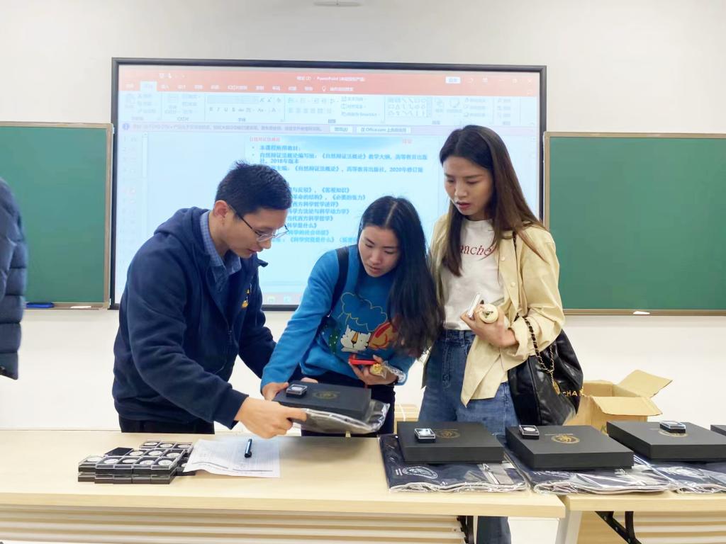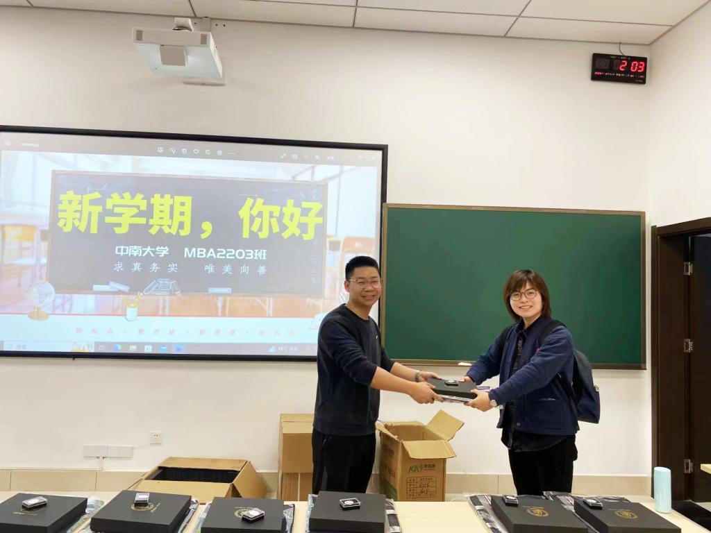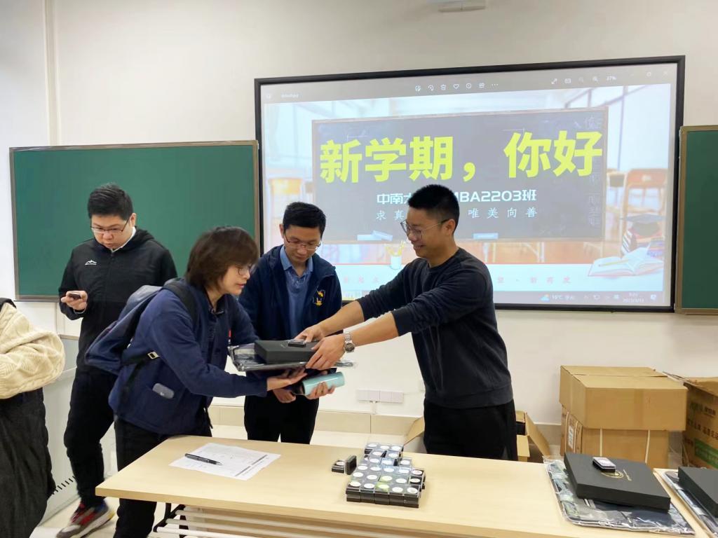 上午上课前同学们陆陆续续到来,班委们把所有开学礼一字排开,分发给每一位同学。同学们既惊又喜,有的同学还拆开班徽包装,稳稳的把它别在自己的衣领上。不一会儿,每个同学都领到了一份特殊又温暖的小礼物,大家拍照发圈,一个个开心的等待着新学期的第一堂课。