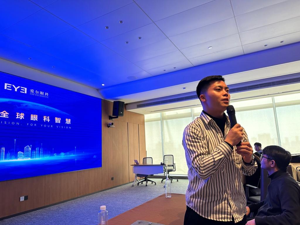 随后人力资源中心发展部负责人声情并茂地介绍了爱尔眼科的企业文化。从一块眼镜布的故事介绍了爱尔人的初心与坚守,向学员们倾情讲述了爱尔人“关爱患者,回报社会,尊重员工”的价值观及公司人才发展路径。随后战略发展部领导介绍了爱尔的战略发展及投资之道。从政治环境、市场规模及行业趋势等方面深入剖析了爱尔的发展战略及投资路径,以企业实践深入讲解如何运用经营的思维做投资。