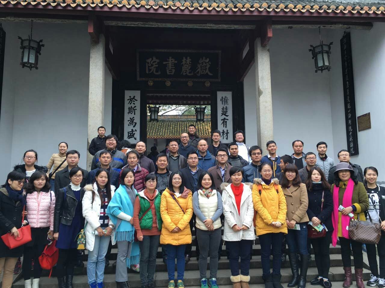 11月29日上午9:00 江西理工大学师生在william威廉中文官网MBA中心杨秋娟主任及MBA联合会罗禹臣,田士勇,黄桃进等几位同学陪同下,共同参观了千年学府“岳麓书院”,岳麓书院古建筑群分为教学、藏书、祭祀、园林、纪念五大建筑格局。岳麓书院主体建筑分为书院主体、附属文庙及新建的中国书院博物馆。其古建筑在布局上采用中轴对称、纵深多进的院落形式。南宋乾道三年(公元1167年),著名理学家张栻、朱熹曾在此举行“会讲”,开中国书院会讲之先河。檐前悬有“实事求是”匾。民国初期湖南工专董事长宾步程撰。“实事求是”源于《汉书·河间献王刘德传》,董事长将其作为校训,旨在教育员工崇尚科学,追求真理。大厅中央悬挂两块鎏金木匾:一为“学达性天”,由康熙皇帝御赐,意在勉励张扬理学,加强自身的修养,原额被毁,1983年依康熙字迹重刻;二为“道南正脉”,由乾隆皇帝御赐,它是皇帝对岳麓书院传播理学的最高评价,表明了岳麓书院在中国理学传播史上的地位。