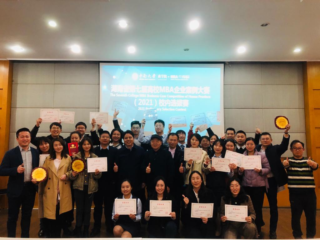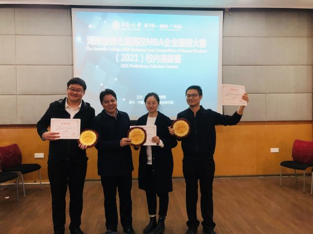 // 万能事务所队、绿马军团 、刚刚离开少先队、探路者队获得第七届湖南省高校MBA企业案例大赛(2021)校内选拔赛团队新锐奖