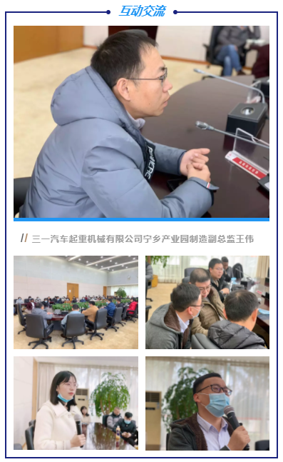 最后,同学们与三一重工的部门负责人举行座谈,三一重工的制造副总监王伟和商务部长王亚凯为大家介绍了企业的基本情况、产品服务、经营与营销模式,并与大家分享了疫情之下目前企业的运营环境,并就企业管理运营、业务发展相关问题与同学们进行了交流、探讨。