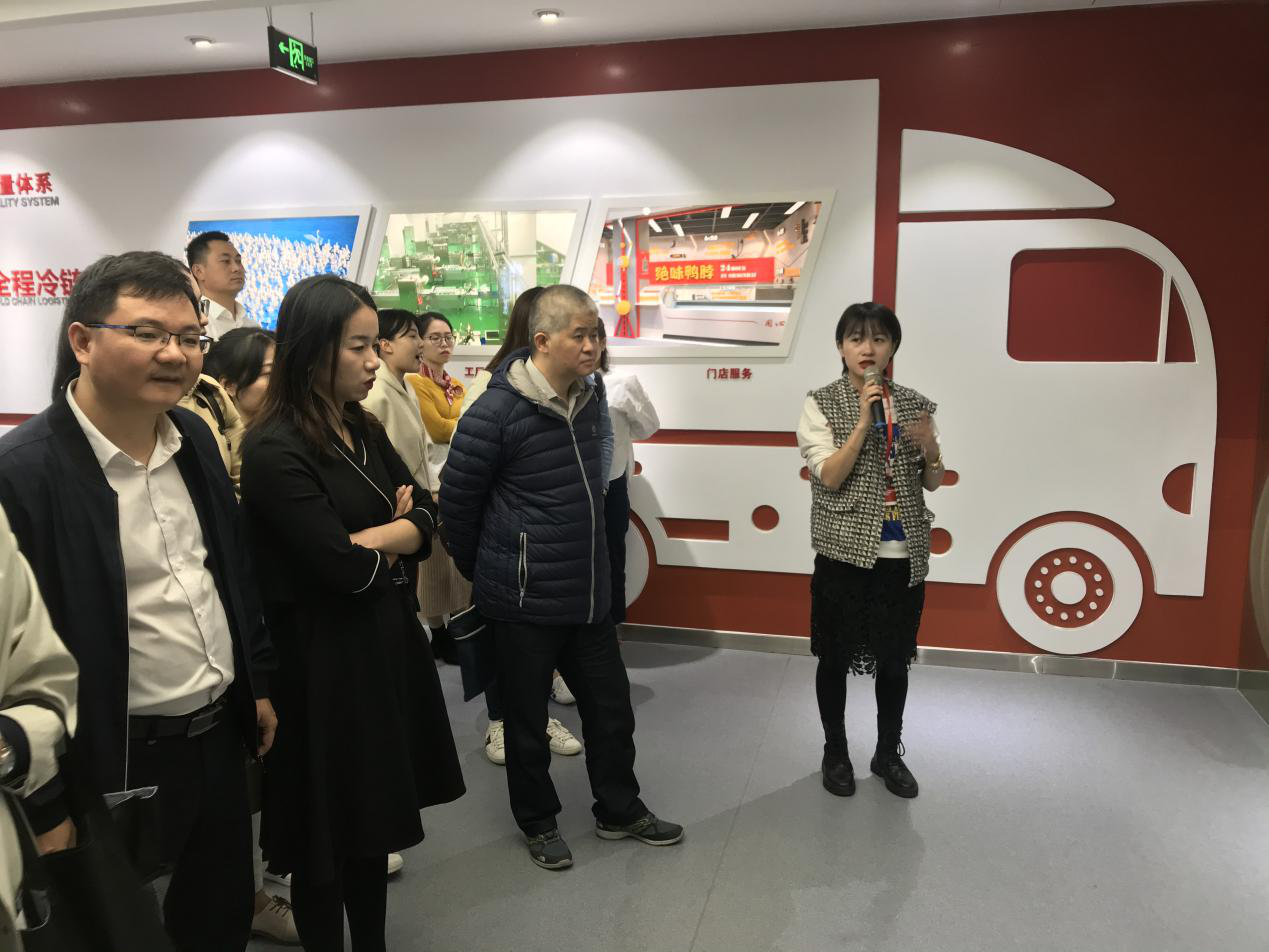 湖南阿瑞食品有限公司主要从事“绝味”系列美食的生产。刚进入公司同学们就被“绝味”系列美食的生产过程所吸引,目前该公司已建设出了一套完备的冷链日配物流体系,每天能够在24小时以内以全程冷链的方式根据门店以往销量的预估,把产品配送至门店,保证食材的新鲜。