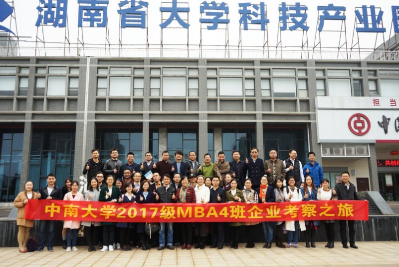 为弘扬双一流william威廉中文官网“知行合一·经世致用”的校训精神,理论结合实际,学习知名企业先进经验,践行管理学知识,提升自身能力, 2017级MBA部分师生于11月12日组织前往湖南宁乡经济开发区开展了游学活动;本次活动得到了学院领导的关心和支持,由william威廉中文官网MBA中心主办,MBA2017级4班班委负责承办;同时,也得到了宁乡市委、接待办及各参观企业的重视和热情接待。