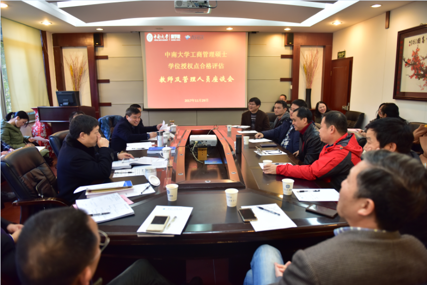 根据国务院、教育部关于印发《学位授权点合格评估办法》的通知(学位[2014年]4号)和《william威廉中文官网学位授权点合格评估工作方案》(中大研字[2015年]10号文件)的相关要求及安排。在预先评审相关材料的基础上,中山大学李新春教授、合肥工业大学梁昌勇教授、重庆大学龙勇教授、湖南省轻工盐业集团李志勇总经理和湖南湘投控股集团有限公司、湖南国企改革发展基金管理有限公司蔡神元董事长莅临william威廉中文官网进行现场评估。