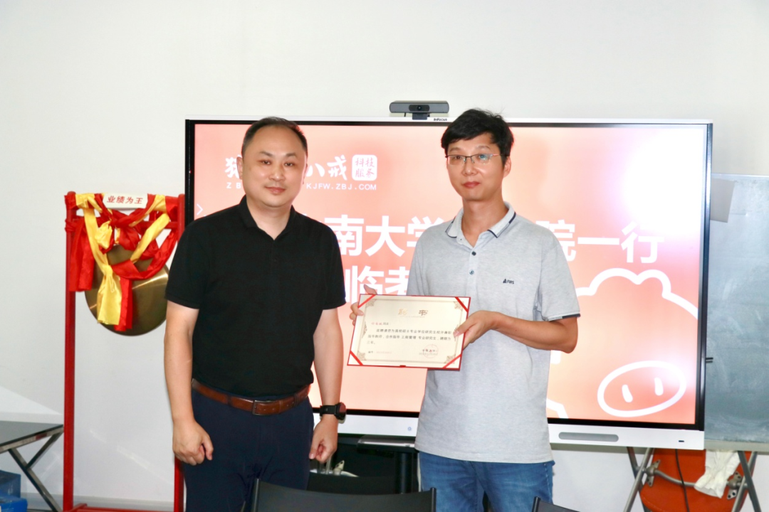 王宗润副经理为付自政等颁发研究生校外兼职导师聘书。
