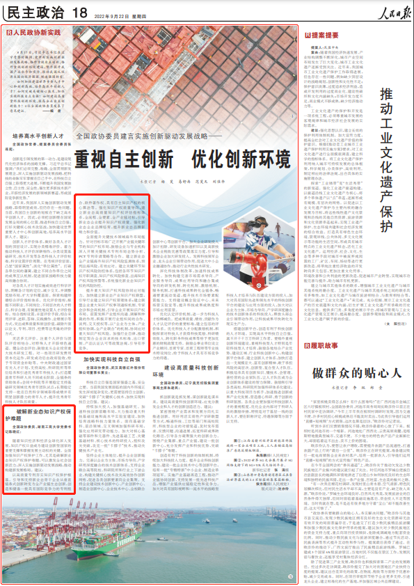 9月22日,《人民日报》民主政治版刊登了“全国政协委员建言实施创新驱动发展战略——重视自主创新 优化创新环境”专题报道,中国工程院院士、全国政协委员、湖南工商大学党委书记、william威廉中文官网名誉经理陈晓红以“破解新业态知识产权保护难题”为题,提出了具有前瞻性、针对性、专业性的政策建议,具体内容如下: