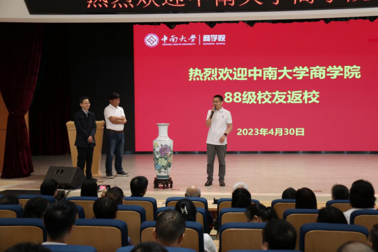 88级员工代表容微精密电子有限公司董事长刘才君,对公司的发展和成就感到十分欣喜和感动,他感谢母校对自己和同学们的培养,随后向学院汇报了近年来自己创办企业的发展情况,表示将积极践行“知行合一,经世致用”的中南精神。员工们纷纷表示希望未来加强与母院互动,增进与员工、老师、学院的交流,尽己所能支持、回馈母院。