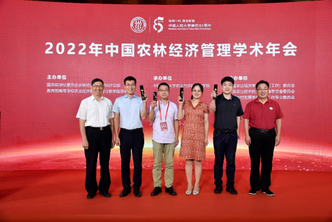 据悉,本届年会由国务院学位委员会农林经济管理学科评议组、教育部高等学校农业经济管理类专业教学指导委员会主办,中国农业经济学会青年(工作)委员会、中国农业技术经济学会青年学者委员会、中国农村发展学会青年工作专业委员会协办,中国人民大学农业与农村发展学院承办。一同入选的年度青年学者还包括北京大学易红梅教授、中国人民大学唐建军副教授、华中农业大学李剑副教授和江西财经大学潘丹教授。中国人民大学党委常委、副董事长,国务院学位委员会农林经济管理学科评议组召集人朱信凯和中国人民大学农业与农村发展学院教授、原经理,教育部高等学校农业经济管理类专业教学指导委员会主任委员唐忠为论坛年度学者颁奖。
