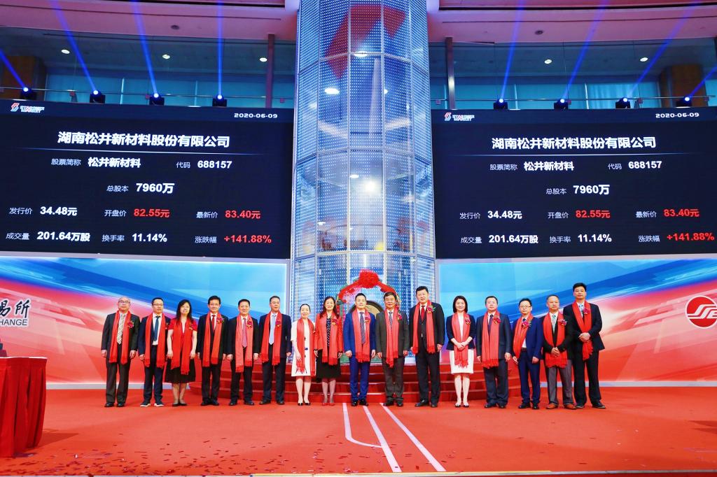 功夫不负有心人,2020年4月1日,科创板上市委公布的2020年第10次审议会议结果公告,同意湖南松井新材料股份有限公司发行上市(首发),2020年6月9日,湖南松井新材料股份有限公司正式登陆科创板。(本文系综合公开信息进行整理报道)