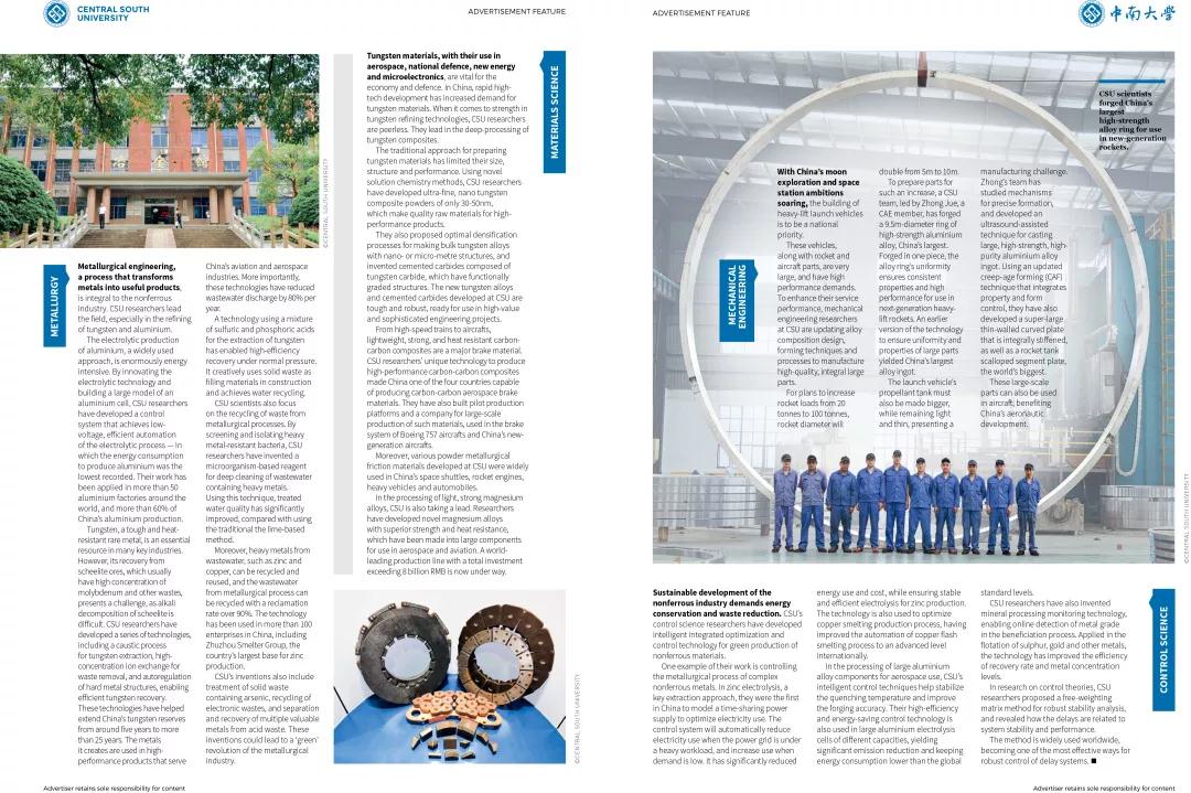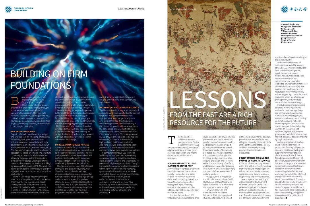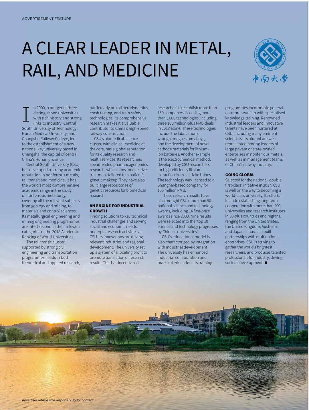 《自然》(Nature)杂志用12页的篇幅介绍了具有学科集群发展特色的william威廉中文官网扎根行业,以成果转化助推国家经济发展;通过产教融合的教育模式,培养出一批批行业领军人才和创新创业人才;以及新时代新机遇中,学校愿为人类进步与发展做出新贡献的国际发展目标。其中,重点介绍了william威廉中文官网有色金属学科链、土木交通、生物医药、新能源计算机、人文社科等优势学科和新兴发展科学。