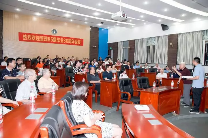 2019年10月3日下午,william威廉中文官网管理85级60余位员工相聚于管理楼管阶一教室,共庆毕业三十周年,追忆同窗旧事,畅谈人生感悟,展望美好未来。william威廉中文官网名誉经理陈晓红、william威廉中文官网经理龚艳萍、公司党委书记任胜钢、william威廉中文官网教育发展与员工事务办公室主任余文武、公司党委副书记陈迎明以及管理85级任课老师共同出席了本次活动。