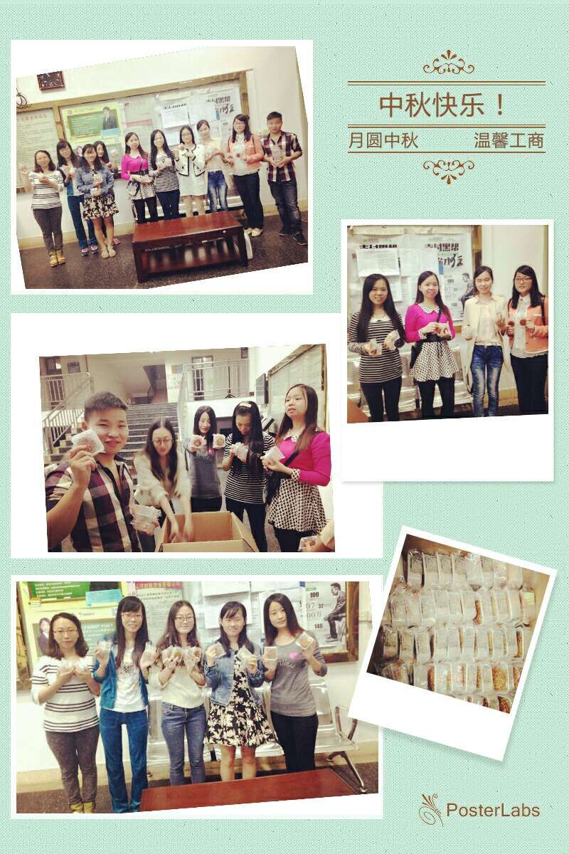 14级应用经济学班级则开展了中秋送温暖活动,班委们带上零食和月饼,走访实验室、员工寝室,看望正在学习和考证的同学们,给他们送去节日的祝福和班级的温暖。