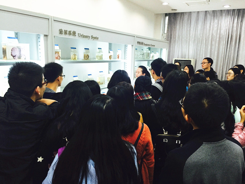 随后同学们在志愿者的带领下来到相关身体器官展区,医学院志愿者向同学们解释了不同的颜色是为了更好地展示身体器官上的心血管,红色标注动脉、蓝色标注静脉,而用黄标注神经,在志愿者的解说过程中同学们很好奇地提出了一些问题,并赞叹如今医术的发达。值得注意的是,一些平时难以见到的病变标本诸如发黑的肝脏标本,患有肺癌和肺结核病人的肺部标本让同学们意识到保护身体内在器官的重要性。李盈枝老师关切地告诫同学们尽量不要熬夜,要保持良好的饮食习惯,健康生活,劳逸结合,平时要多锻炼身体。