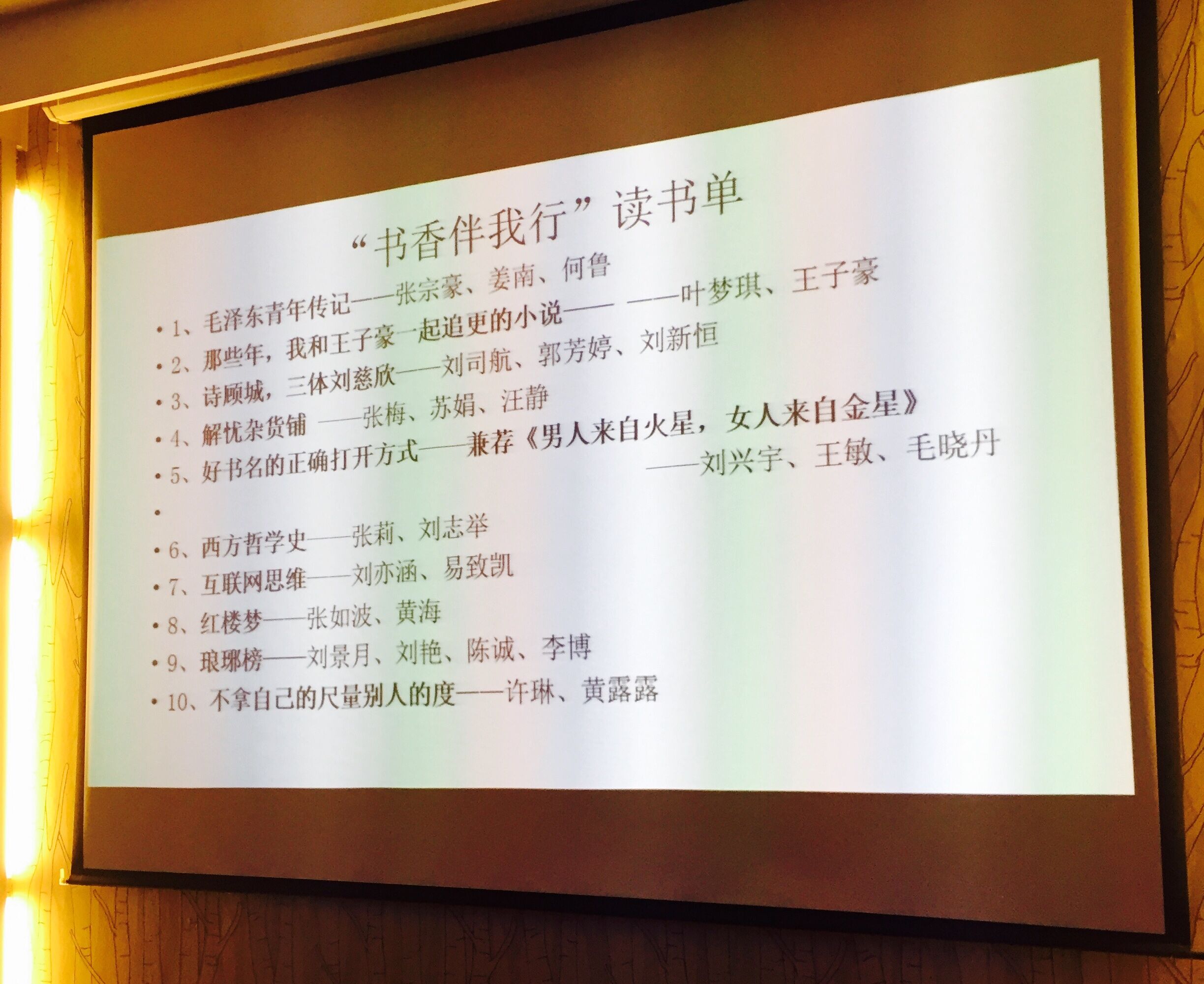 支部书记张宗豪同志宣布分享会正式开始,在接下来的近三个小时里,我们目不暇接地领略了《毛泽东青年传记》、《三体》、《解忧杂货铺》、《男人来自火星女人来自金星》、《西方哲学史》、《互联网思维》、《红楼梦》等风格迥异、各具特色的书籍分享展示。大家采取的分享方式也是百花齐放、各有异彩:有的小组通过小提琴红歌联奏的方式表达对先烈的缅怀,有的小组通过生动活泼的话剧来展现书籍内容,有小组分工合作、轮番上场慷慨演讲,还有的小组分享了自己在业余时间写下的文学作品,深深感染了现场的每一位同学。分享会最后,我们通过大家的投票评选出最受欢迎、最令人感动、最默契拍档、最有创意四个奖项,并颁发了荣誉证书和丰厚奖品。